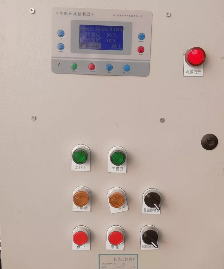 智能放風器以日光溫室內外溫度、濕度等參數指標的實時監測數據為依據,按不同使用要求設定限值,智能控制上下風口的開閉,實現自動通風、排濕,智能防風防雨防雪等功能。