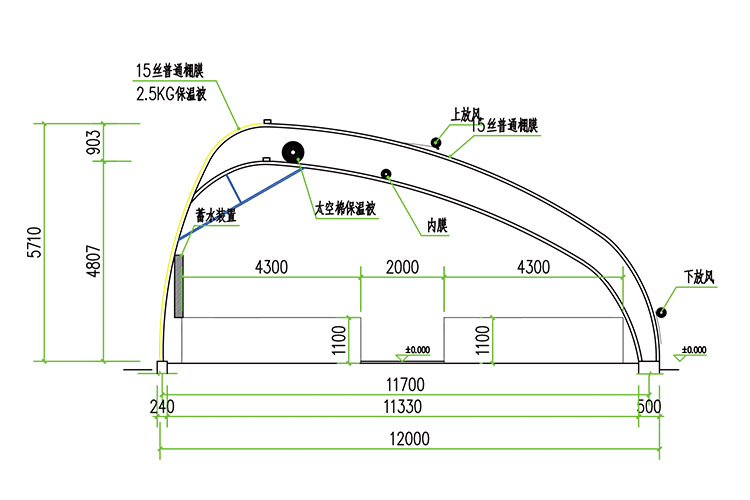 新型陽光養殖棚舍系列產品剖面圖