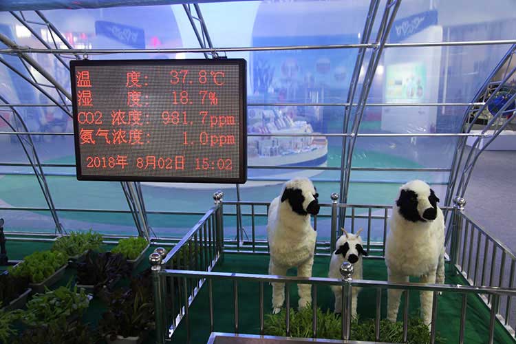 參展商喬曉雪介紹,智能棚舍可以科學(xué)設(shè)定適合牛羊生長(zhǎng)的光照、溫度和濕度,棚舍內(nèi)安裝的監(jiān)測(cè)器24小時(shí)實(shí)時(shí)監(jiān)控。當(dāng)發(fā)現(xiàn)舍內(nèi)環(huán)境不適宜時(shí),將自動(dòng)開(kāi)啟通風(fēng)換氣系統(tǒng),實(shí)現(xiàn)了牛羊養(yǎng)殖的機(jī)械化、自動(dòng)化和智能化,解決了冬季保溫、母畜接羔成活率、掉膘、飲用溫水等問(wèn)題,實(shí)現(xiàn)了節(jié)約人力和有效生產(chǎn)。
