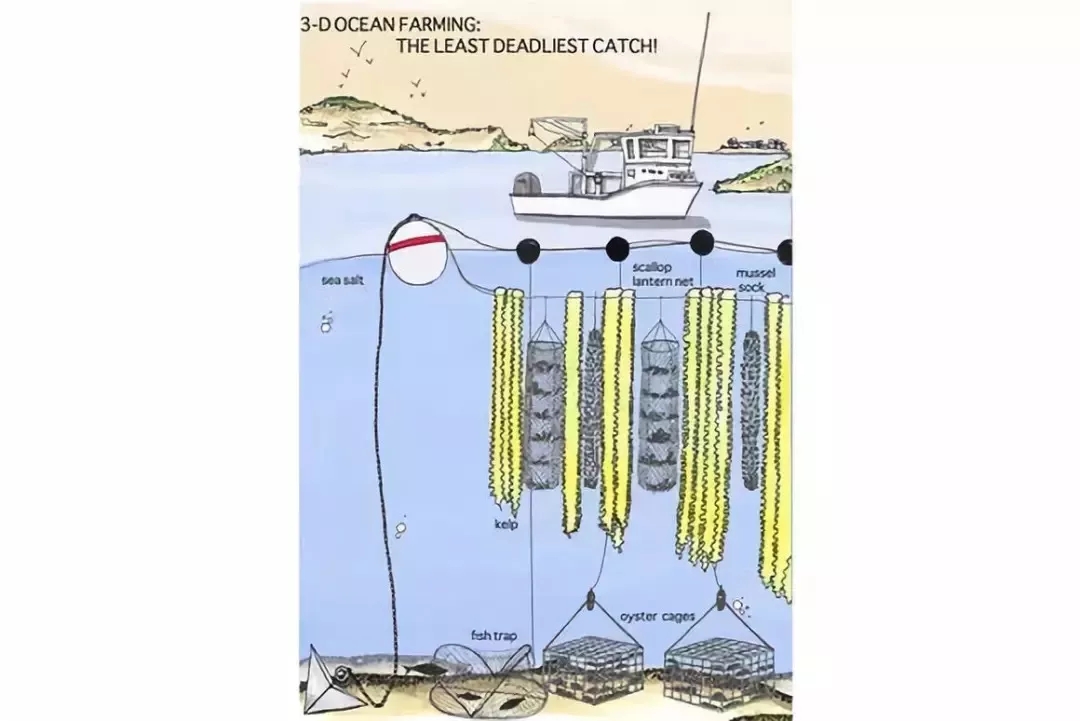 布倫·史密斯(BrenSmith)想要創(chuàng)造數(shù)千個體面的工作,改變我們從海洋中獲取食物的方式,降低氣候變化和海洋退化的影響,這促使他提出了“小規(guī)模的3D海洋農(nóng)場”的設(shè)想。他在寫給《國家地理》雜志的文章中表示:這一“3D海洋農(nóng)場”的基礎(chǔ)設(shè)施非常簡單——海藻、扇貝和貽貝長在浮動的繩子上,上面堆放牡蠣和蛤籠。從這些作物將用于海洋農(nóng)民來生產(chǎn)糧食、肥料、動物飼料、醫(yī)藥、化妝品、生物燃料和其他副產(chǎn)品。